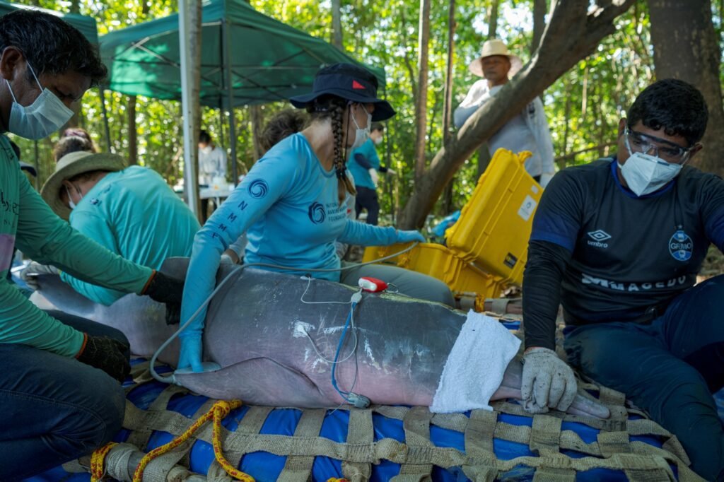 A captura científica é essencial para estudar o panorama de saúde dessa espécie, possibilitando análises hematológicas completas a partir de amostras de sangue e detecção de agentes infecciosos, contaminantes ou biotoxinas nos indivíduos de vida livre a partir de amostras de secreções de mucosas. Além disso, também foram instalados 12 transmissores satelitais que coletam informações sobre a localização do animal associadas a profundidade e temperatura. Esses dados são cruciais para acompanhar a movimentação dos botos em seu habitat natural e compreender melhor seus padrões de deslocamento
